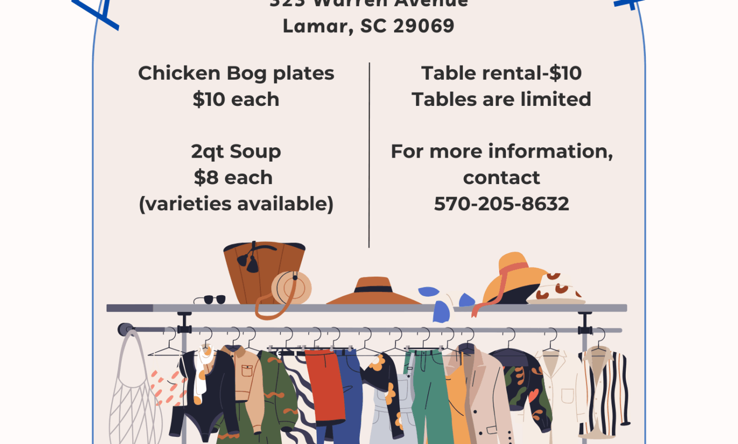 Chicken Bog Plates $10 each 2 Quart Soup $8 (varieties available) Table Rental $10 Tables are LIMITED For more information, contact 570-205-8632 All proceeds go to the refurbishment of the American Legion...