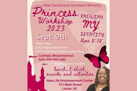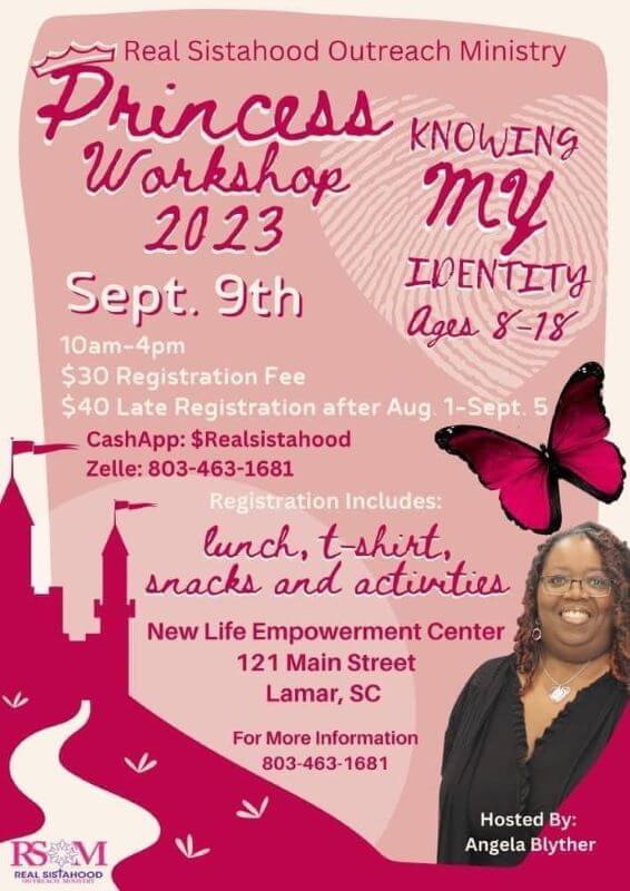 The Real Sistahood Outreach Ministry with host, Angela Blyther, is holding a Princess Workshop for ages 8-18 at the New Life Empowerment Center in Lamar.